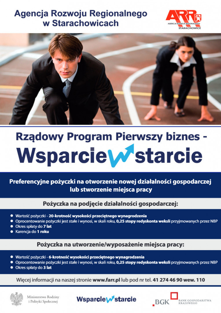 "Rządowy Program Pierwszy Biznes – Wsparcie w starcie" to program Ministerstwa Rodziny i Polityki Społecznej, realizowany przez Bank Gospodarstwa Krajowego.